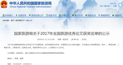 近日,国家旅游局公示了2017年全国旅游优秀论文获奖名单,公司beat365在线官网入口柳红波副教授的学术论文《西北地区旅游制度变迁主体与动因:张掖景区经营权转让的实证》荣获二等奖,此次获奖成果中一等奖空缺,柳红波副教授学术论文荣获的二等奖是本次获奖成果的最高等级。获奖名单一经公示,引起了甘肃省旅游发展委员会和张掖市旅游发展委员会的高度关注,以“体制改革‘改出’张掖两百万人次大景区”为题分别在其官网和微信公众号推送,引起了产业和行业人士的广泛好评。