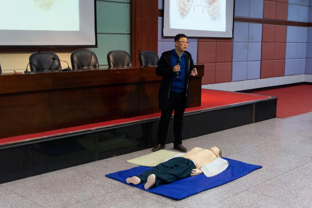 王春就高血压的防治与治疗,中风的诱因与应急措施,受伤出血的应急处理,心梗、脑梗、脑溢血的前期症状及预防,心脏病急性发作的症状及救治方法,烫伤的紧急救护措施等进行了深入浅出、生动形象的讲解,并就心肺复苏急救方法进行了详细的现场演示及培训。他扎实的业务功底、诙谐幽默的讲解,丰富了与会人员的救护与保健知识,提高了大家对疾病防范和自我保健的意识,增强了疾病紧急发生时的现场救护能力,使大家受益匪浅。