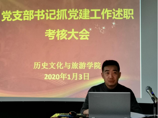 2020年1月3日,beat365在线官网入口在旅游综合实验室召开2019年度党支部书记抓党建述职评议考核大会。党总支负责人主持会议,党员师生代表50多人参加了会议。