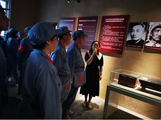 全体师生党员在龙渠会议纪念馆和战史馆聆听了红西路军在龙渠乡战斗及龙渠会议的历史细节,在张家屯庄红色基因传承馆听讲解员介绍了龙渠乡的红色经典故事,到龙渠烈士陵园瞻仰了中国工农红军西路军烈士纪念碑,向革命先烈敬献了花篮,回顾了白城子战斗的惨烈,同志们被红军战士的牺牲精神和人民群众世代守护烈士陵墓的事迹深深感动。大家同穿红军衣、同吃忆苦思甜饭,体会红西路军征战河西艰苦生活,体味幸福生活的来之不易。