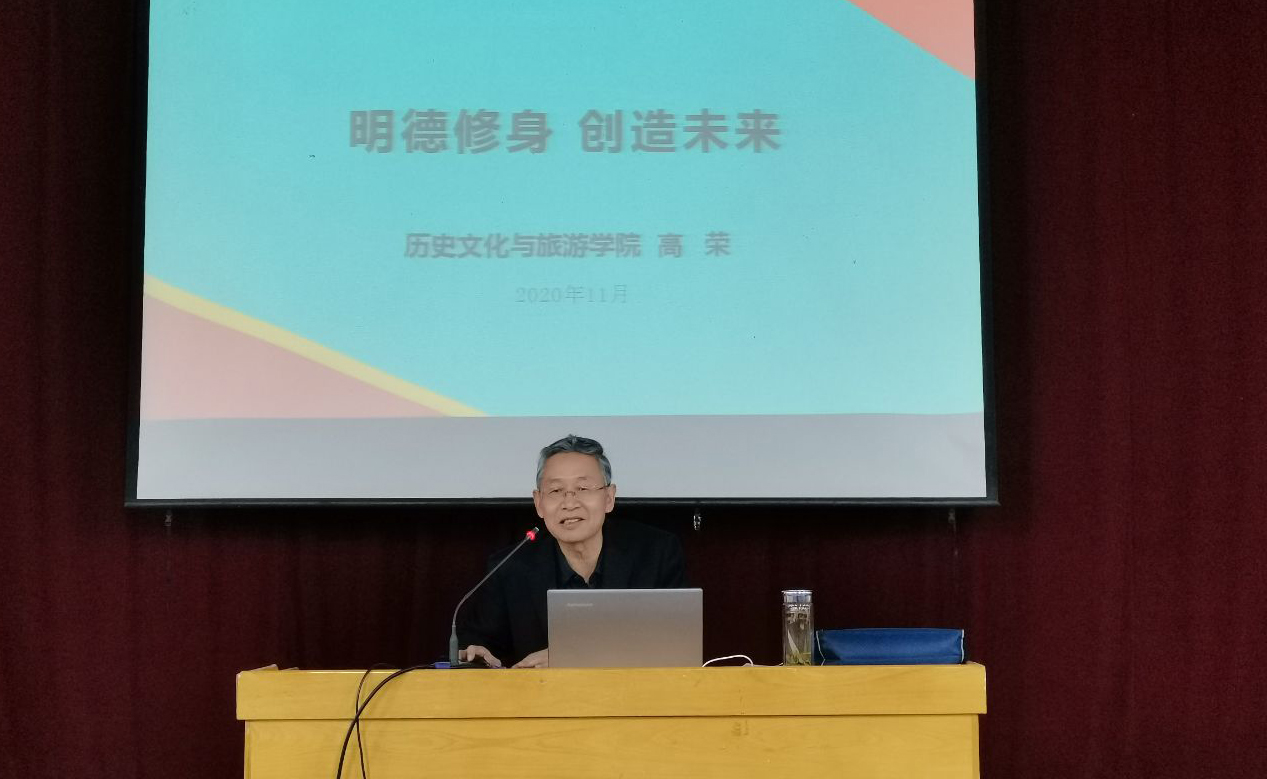 高荣教授结合多年的从教、治学经历,从大学的根本任务、老员工应该如何安排自己的生活与学业、老员工应该如何创造美好的未来等方面,同与会师生分享了自己的经验,并结合历史学、旅游管理、酒店管理等专业特色,对老员工提出了中肯的建议。高荣认为,当代老员工应该学会学习、学会做人、学会做事,要敢于担当和超越,要明礼诚信,要乐观豁达,形成健全的人格、健康的心灵和健康的体魄,在此基础上,才会创造属于自己的成功的美好未来。