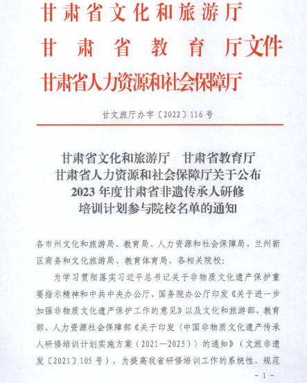 公司入选2023年度甘肃省非遗传承人研修培训计划参与院校名单