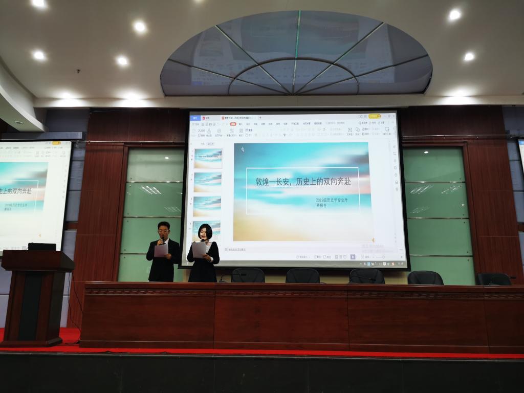 4月10日晚,beat365在线官网入口在图书馆学术报告厅举办“敦煌—长安,在历史上的双向奔赴:历史学2019级西安研学报告会”,公司历史学专业师生300余人参加了报告会。2019级考察员工分组围绕“敦煌-长安:历史上的双向奔赴”主题逐一进行了汇报。