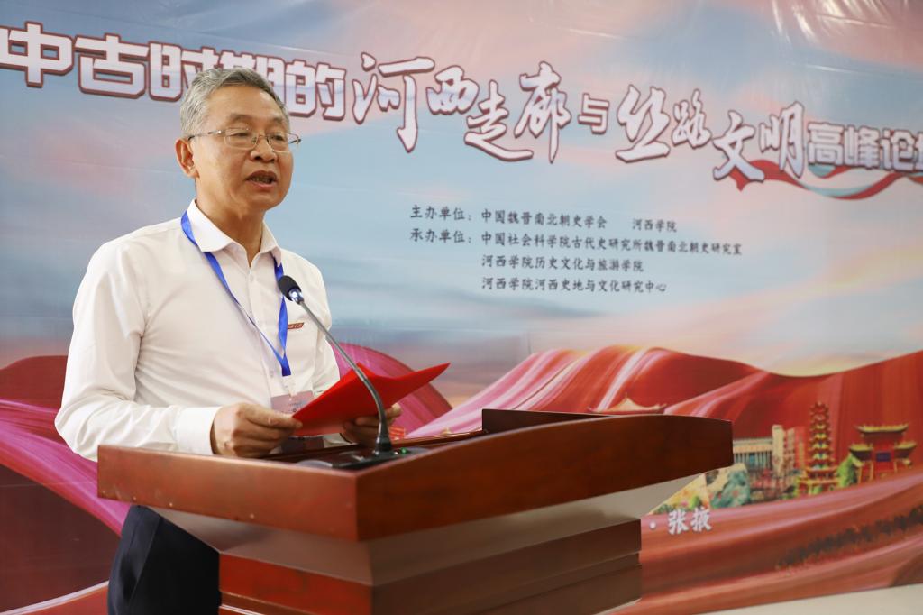 中国魏晋南北朝史学会会长、中国社会科公司楼劲先生代表学会致辞,对论坛的召开表示祝贺。根据河西走廊所处重要地理位置,楼劲先生根据自身研史经历指出,对河西走廊一带相关历史的研究于中华文明、亚欧史、世界史的研究,皆具有重要作用,并希望以本次论坛为契机,展开相关问题的深入讨论与研究。
