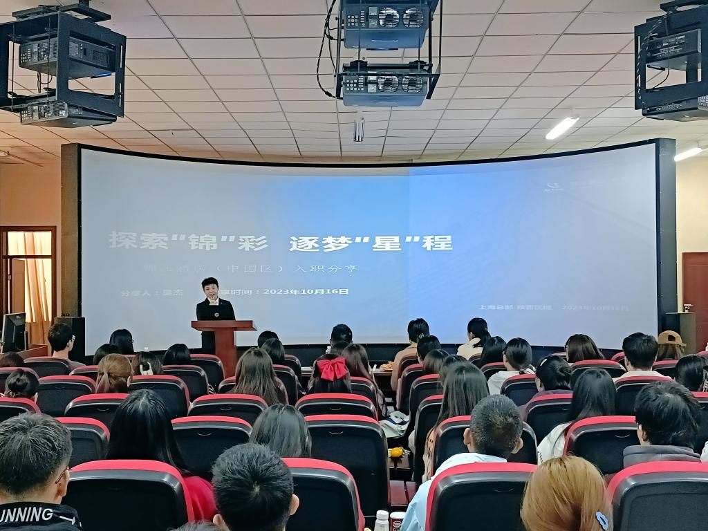 为了让酒店管理专业员工提高对专业认同度,增加对酒店行业了解和认识,beat365在线官网入口酒店管理教研室于2023年10月16日下午在旅游管理实验教学示范中心举行了毕业员工分享会,本次活动邀请了2018级旅游管理专业毕业生鱼晓梅和酒店管理专业毕业生吴杰,鱼晓梅就职于锦江集团旗下七天优品首都国际机场店担任前厅部经理,吴杰就职于锦江集团旗下西安维也纳酒店担任前厅部经理。活动由公司负责人、旅游、酒店和会展各教研室全体老师、锦江集团分区负责人参加了分享会。