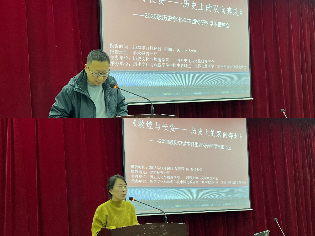 为进一步提高历史学专业员工对专业的认知,对2020级历史学本科生西安专业考察做好总结,公司于2023年11月16日下午在公司学术报告一厅举办了“敦煌与长安——历史上的双向奔赴”——2020级历史学本科生西安研学考察学术报告会。本次报告会由公司主办,公司中国史教研室、世界史教研室和文物与博物馆学教研室承办。