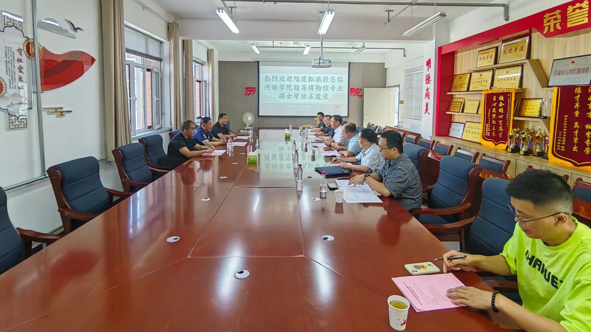 受公司邀请,8月13日,国务院学位办全国文博专业研究生学位教育指导委员会秘书长、复旦大学考古学博士后流动站站长陆建松教授来校对博物馆专业硕士学位点建设工作进行指导。党委常委、副董事长唐志强,博物馆专硕导师参加会议。