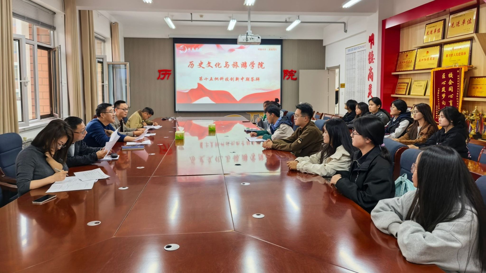 本次立项的老员工科技创新项目包含多项社会科学类课题,覆盖智慧旅游、红色文化传播、旅游演艺、非遗传承以及农文旅融合等多个研究方向。各项目负责人依次进行汇报,展示了项目的研究进展与阶段性成果,评审老师针对各项目内容提出了具有指导性的意见与建议。
