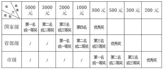 (一)奖励标准按县(区)、市(校)、省、国家奖励层次分别为:500、1000、2000、3000元。